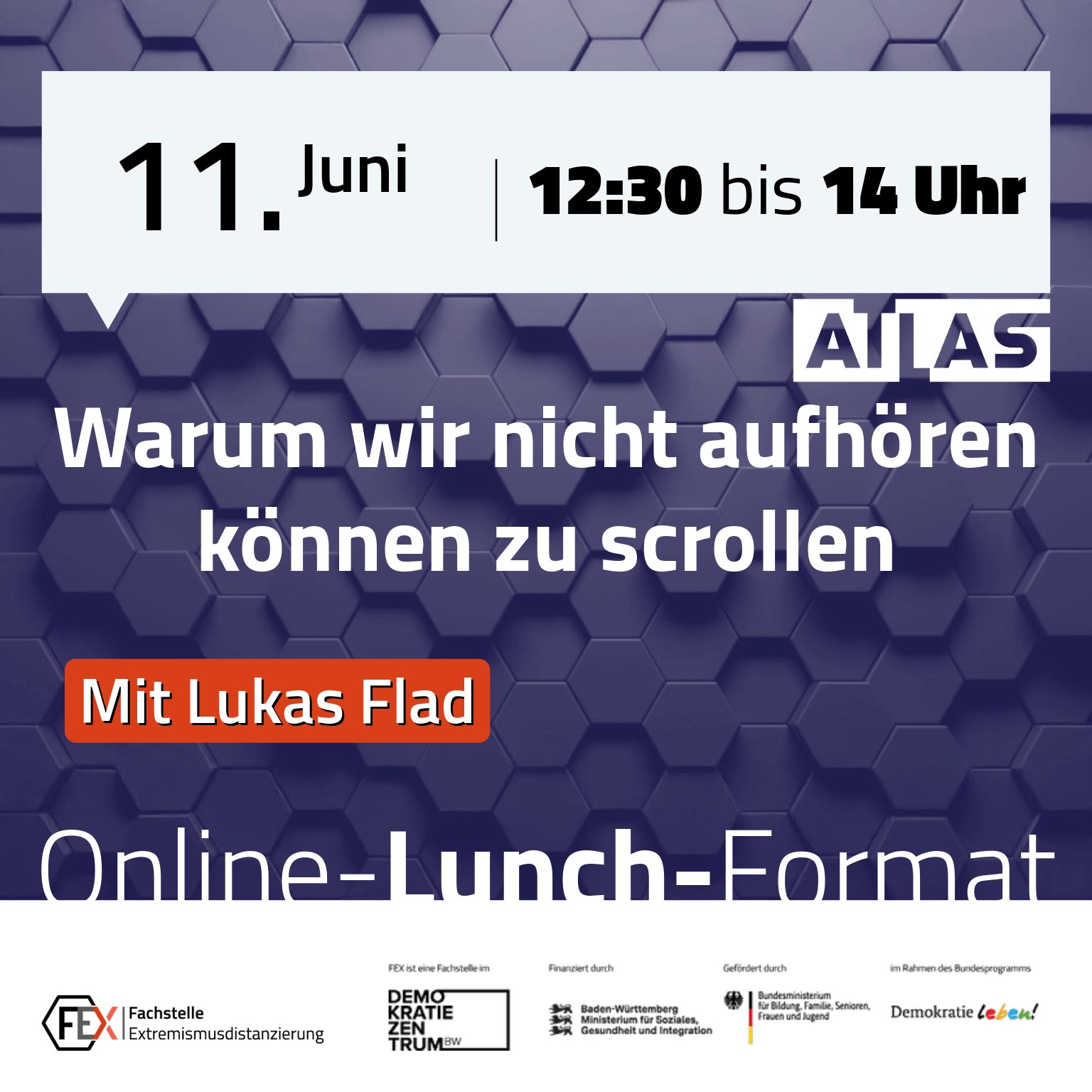 Zoom„Wofür mach ich das?!“ Hip-Hop & Engagement im Selbstauftrag April 15 @ 12:30 - 14:00 Veranstaltungsbeschreibung: "Wofür mach ich das?!", fragt Rapper und Philosoph Lakmann auf dem gleichnamigen Song von […]
